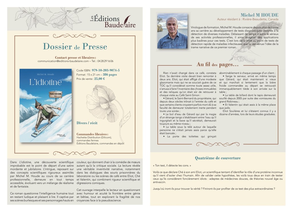 Mise en garde: Les faits rapportés dans ces chroniques sont bien sûr totalement inventés. Si vous avez cru un tant soit peu à la véracité de quelques-uns de ces propos, il est fortement recommandé de consulter sans tarder un professionnel de la santé.